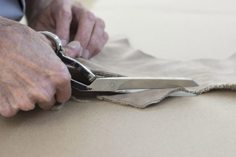 裁剪是制作完美成衣重要的第一步,裁剪師傅更是這第一步的關鍵。選取皮革,毛皮長度,皮張大小,精確的裁剪預示著完美成衣的開始。